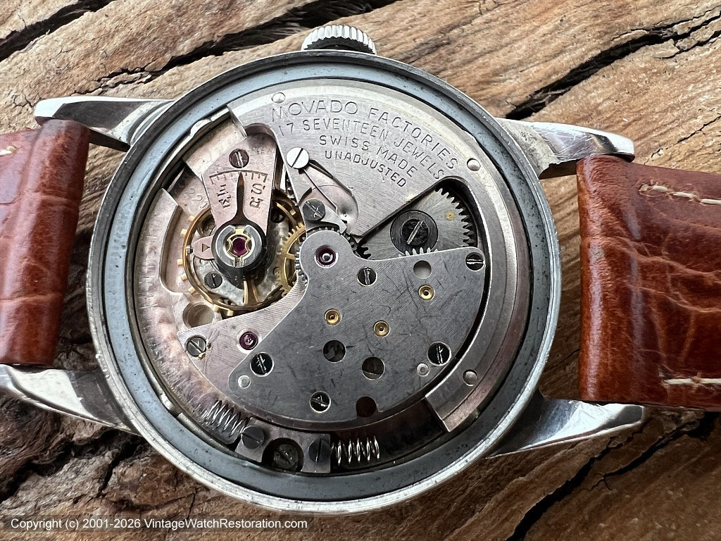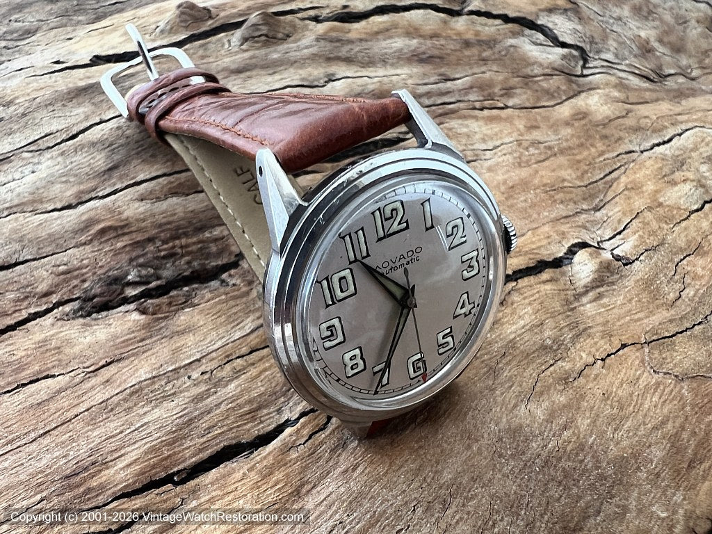 Fitted with 17 jewel al 221 Movado signed automatic bumper movement that is running well and keeping good time. Comes with a 6-month mechanical warranty |