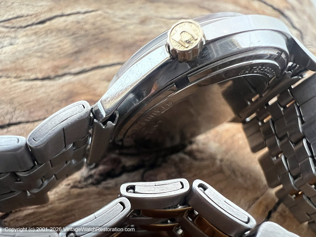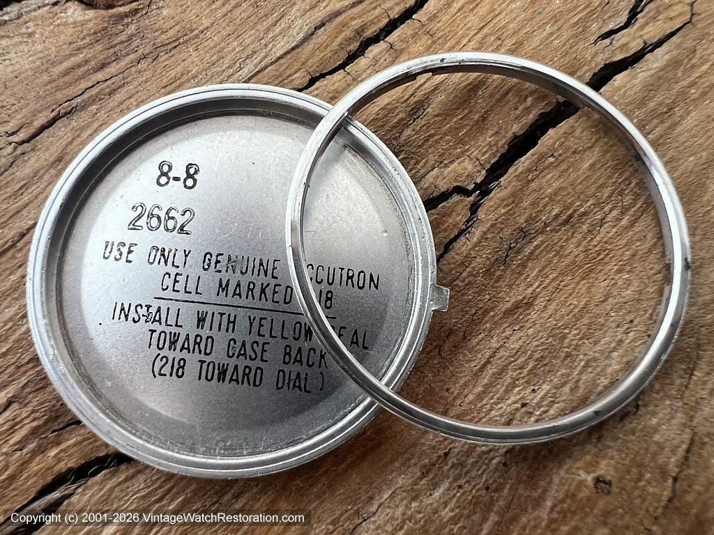 Bulova Cal 218D electronic movement that is running perfectly, recently serviced and comes with a 12-month mechanical warranty. |
