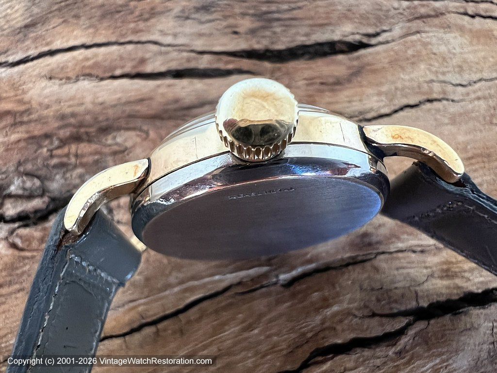 Gold plated case with base metal back lid that still shows its brushed finish.  The watch was very lightly used and handled. Made by Star Case Co.